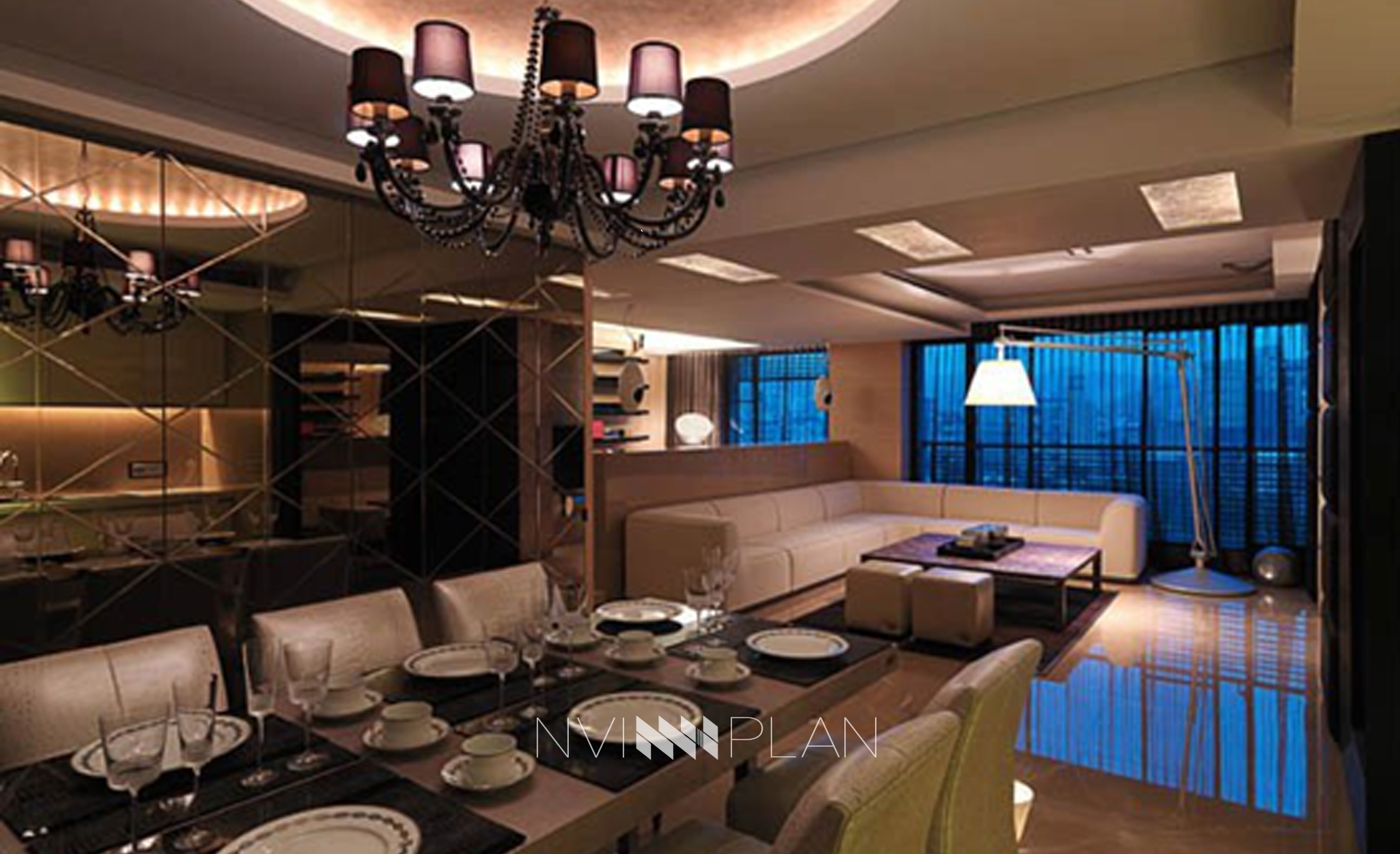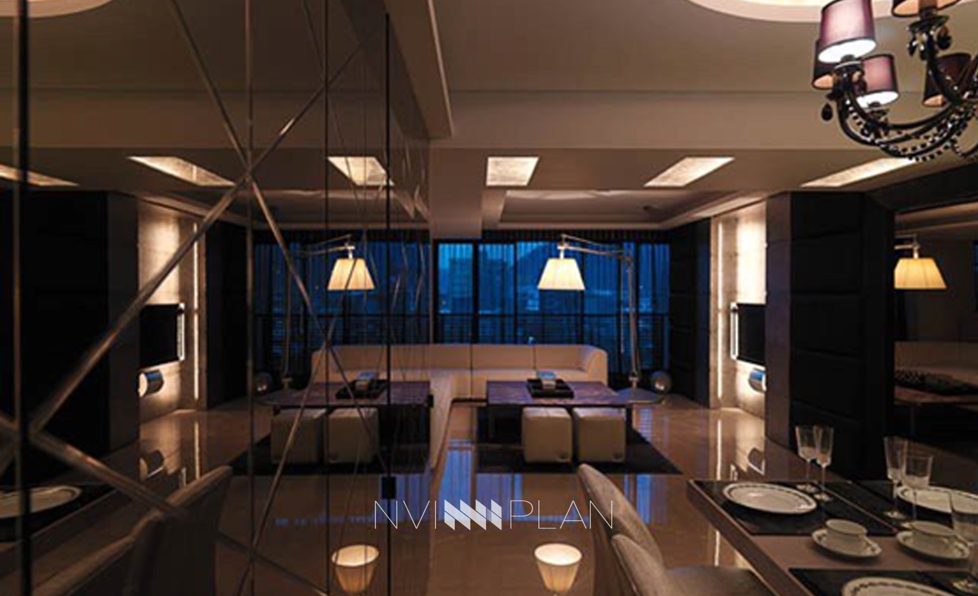 天花的燈光與倒影把目光引向遠處 像生活的期許延至遠方